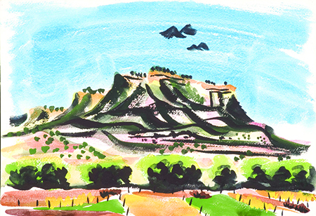 There are 23 pieces in the gallery exhibit: 21 watercolors and two lithographs. The show features local landscapes like Storrie Lake in Las Vegas and the Arrott Ranch near Sapello, as well as pieces depicting New England and Oaxaca, Mexico.