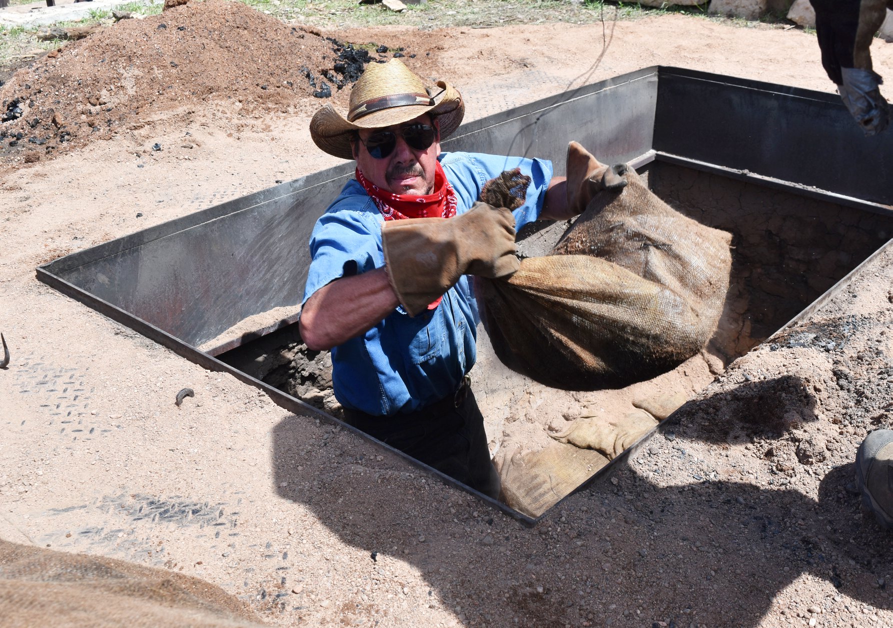 So in 2021, using some of the materials from the old pit near the football stadium, a new pit measuring 10-feet by six-feet by four-feet and lined with fire bricks and with a concrete-reinforced base, was built, as was a traditional, adobe bread-making horno.