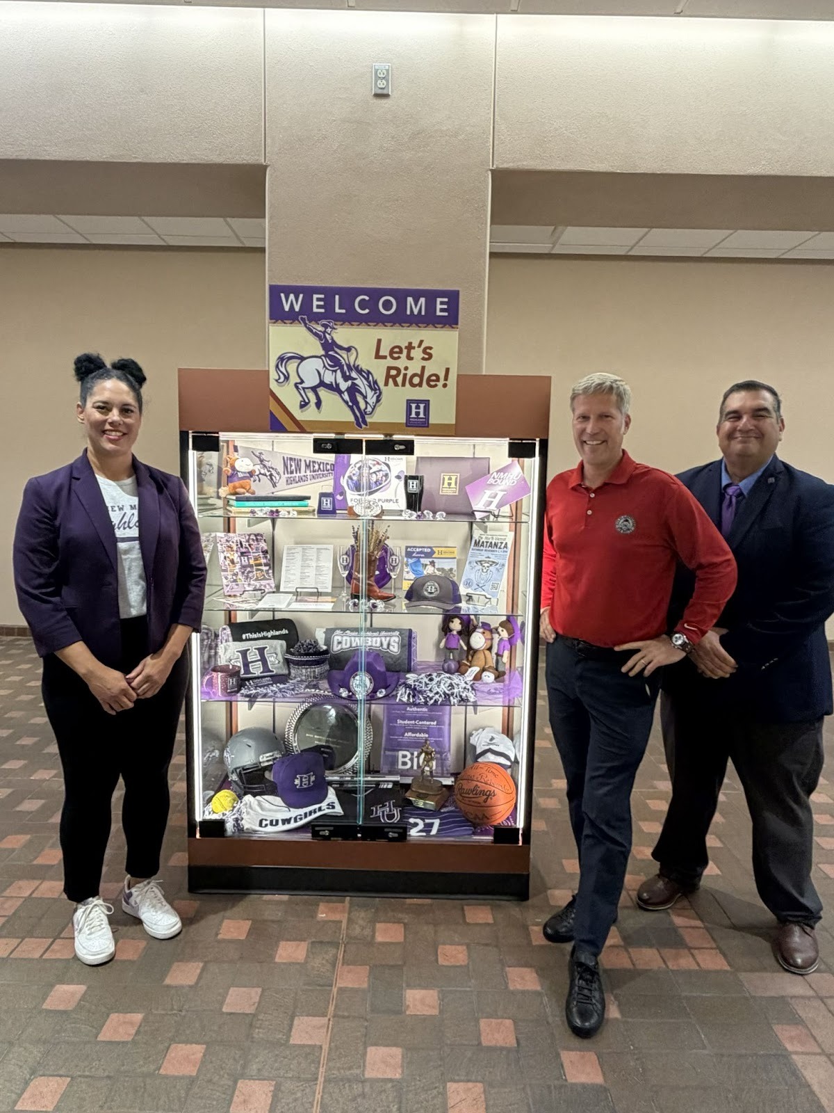 NMHU joined seven other institutions of higher education in showcasing our university at the inaugural Knowledge Concourse at the Albuquerque Sunport. Albuquerque Mayor Tim Keller attended the event to unveil each of the display cases, allowing visitors to see the full range of educational opportunities available across New Mexico. Special thanks to Nicole Boulom and Dave Lepre for representing Highlands at the event, and to Ted Gonzales, Alexis Duran, Clint Weckerly, and Shawna Wenseng for helping bring the display together. Here’s a photo of the display alongside Mayor Keller: